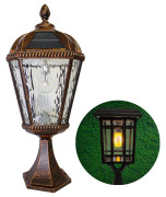 Gama Sonic Flicker Flame Royal Pier Mount Solar Lamp - Brushed Bronze - Includes Both Warm White GS Bulb and Free Flicker Flame Bulb