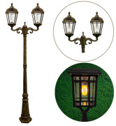 Gama Sonic Double Head Flicker Flame Royal Solar Lamp Post - Includes Both Warm White GS Bulb and Free Flicker Flame Bulb