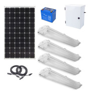 Earthtech Products Shipping Container Lighting Kit 4 - (4) Lights (9,516 Lumens), (1) 200W Solar Panel, (1) 85 Ah Battery